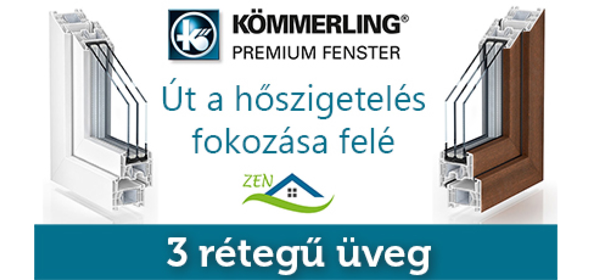 - Kömmerling AD76 | 3 rétegű – 44 mm üveg | ALU távtartó | Uw: 0.94 W/m2K