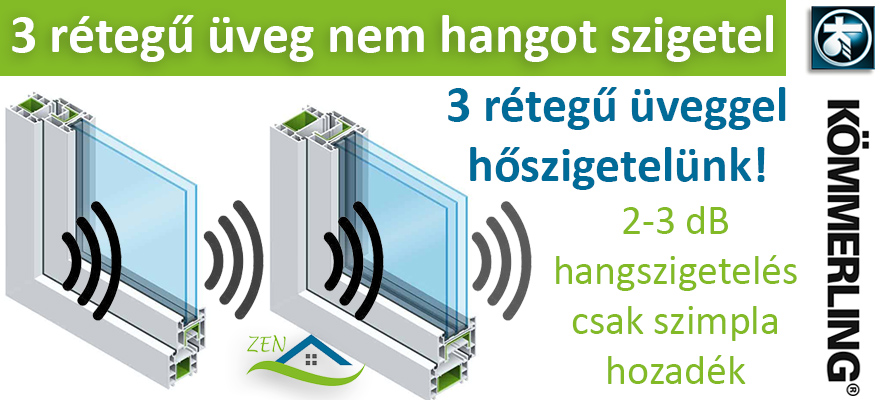 A két rétegű és a 3 rétegű üveg között csupán 1-3 dB hangszigetelési értékkülönbség van, ami a harmadik üvegnek köszönhető. De ez is csak laborérték és a házadon mérhető hangszigetelés, ennek töredéke lesz. Ellenben a harmadik üvegrétegnek a hőszigetelési hozadéka a fontos. Az üveggel plusz lágyfémbevonatot (lowe) és argonkamrát kapsz, ami a hőt szigeteli, nem a hangot. Ezen a harmadik üvegen vergődik át a hang, de egyenes vonalban. Picit gyengül, de azért nem retten meg ettől a feladattól. Ezért mondom, hogy a hangszigetelés nem így működik és sajnos nincs jó hírem neked. A valódi hangszigetelésnek magas a költsége, mert más a technológiai folyamat.